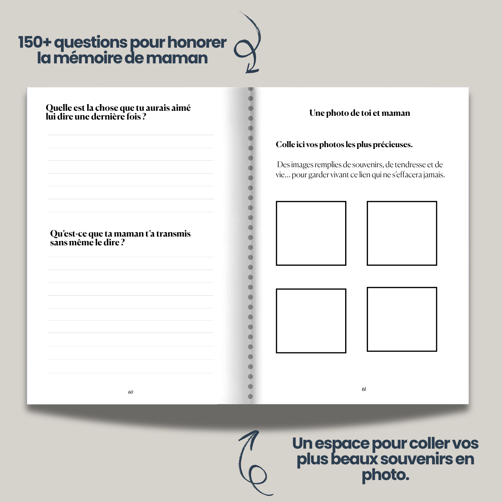 • 150+ questions d'introspection guidée, méticuleusement sélectionnées par des experts du deuil,